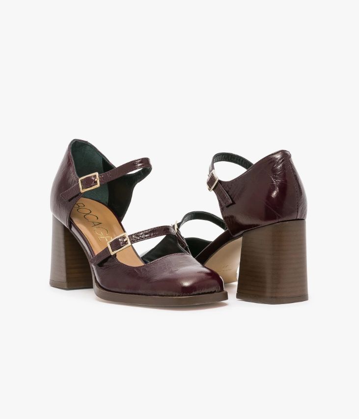 Un escarpin en cuir acajou fabriqué avec soin au Portugal. Un modèle résolument rétro avec son bout carré posé sur une trépointe débordante, ses fines brides sur le dessus fermées par des boucles dorées et son large talon. Un escarpin ouvert sur les côtés et entièrement doublé cuir avec semelle intérieure cuir dotée d’une fine mousse. Son cuir vintage est un cuir d'aspect vieilli qui se patine avec le temps, un cuir brillant qui affiche un aspect plus ou moins froissé, dont la tonalité peut varier, et qui peut avoir un aspect "déjà porté".