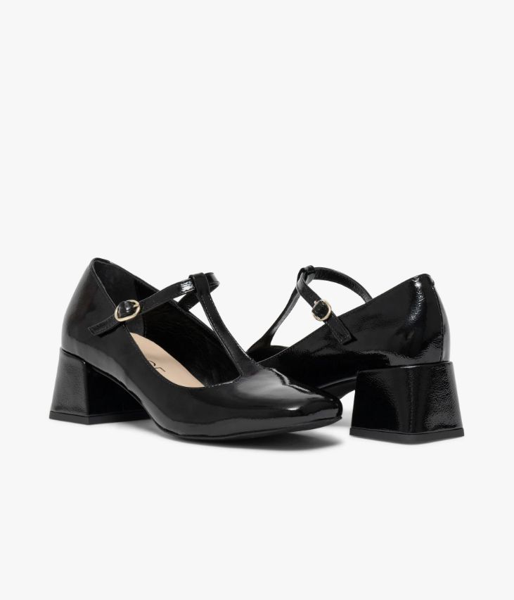 Un escarpin en cuir verni noir fabriqué avec soin au Portugal. Avec son bout carré, sa forme Salomé et sa fine bride à boucle dorée, cette chaussure chic et féminine revendique franchement ses inspirations rétro. Un escarpin entièrement doublé cuir avec semelle intérieure cuir moussée. Il repose sur une semelle fine et un talon carré enrobé. Ce cuir Naplak particulièrement souple peut présenter un aspect légèrement froissé.