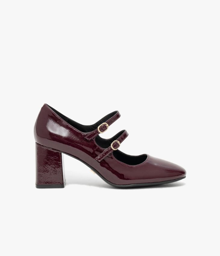 Un escarpin en cuir verni lie de vin fabriqué avec le plus grand soin. Cet escarpin à bout arrondi séduit par ses fines brides sur le cou-de-pied fermées par des boucles ovales en métal doré. Une chaussure entièrement doublée cuir avec semelle intérieure cuir moussée. Elle repose sur une semelle fine et un talon carré enrobé. Notre technologie Bocage Innovation vous garantit un bien-être inégalé. La semelle dissimule des élastiques qui permettent à votre chaussure de s’adapter à votre pied. Ce cuir Naplak particulièrement souple peut présenter un aspect légèrement froissé. Logo signature sous la semelle.