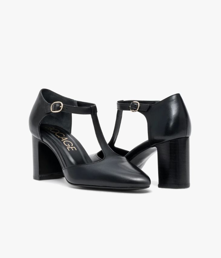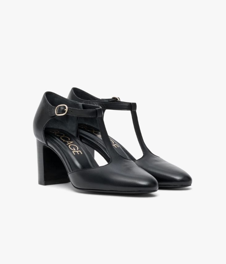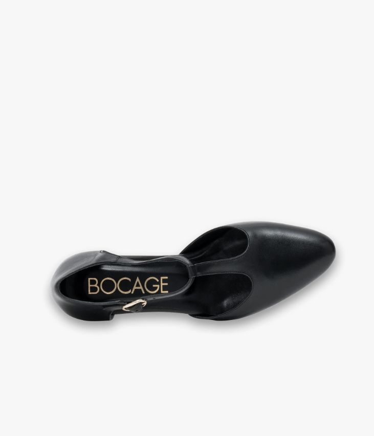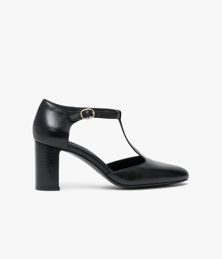 Un escarpin Salomé en cuir lisse noir fabriqué avec soin au Portugal. Un modèle très féminin avec bout amande effilé assurant un excellent maintien grâce à une fine bride sur le cou-de-pied et une bride cheville fermée par une boucle dorée. Une chaussure entièrement doublée cuir avec semelle intérieure cuir dotée d’une fine mousse. Elle repose sur une semelle fine et un talon à gorge lamellé collé.