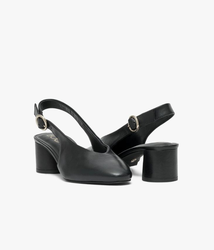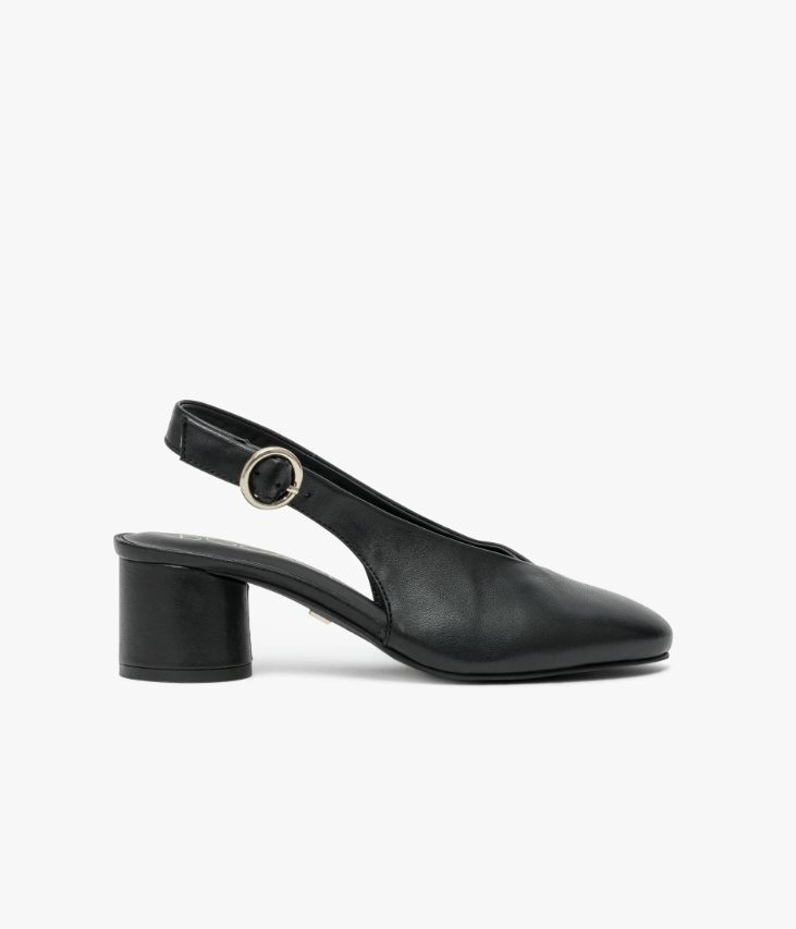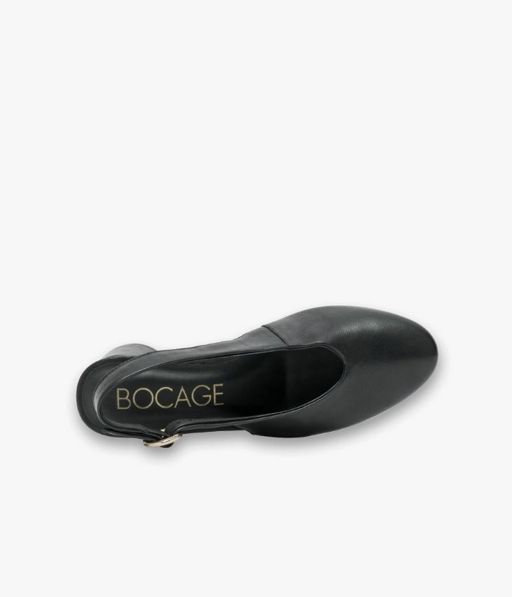 Un escarpin sling-back en cuir noir fabriqué avec le plus grand soin. Dotée d’un dessus enveloppant avec bout amande et décolleté en V, cette chaussure offre un excellent confort. Sa bride arrière se ferme à l’aide d’une jolie boucle ronde en métal doré. Cet escarpin mixe une allure rétro à un talon enrobé de forme ronde, résolument contemporain. Une chaussure entièrement doublée cuir, dotée d’une semelle intérieure cuir très confortable. Notre technologie Bocage Innovation vous garantit un bien-être inégalé. La semelle dissimule des élastiques qui permettent à votre chaussure de s’adapter à votre pied. Logo signature sous la semelle.