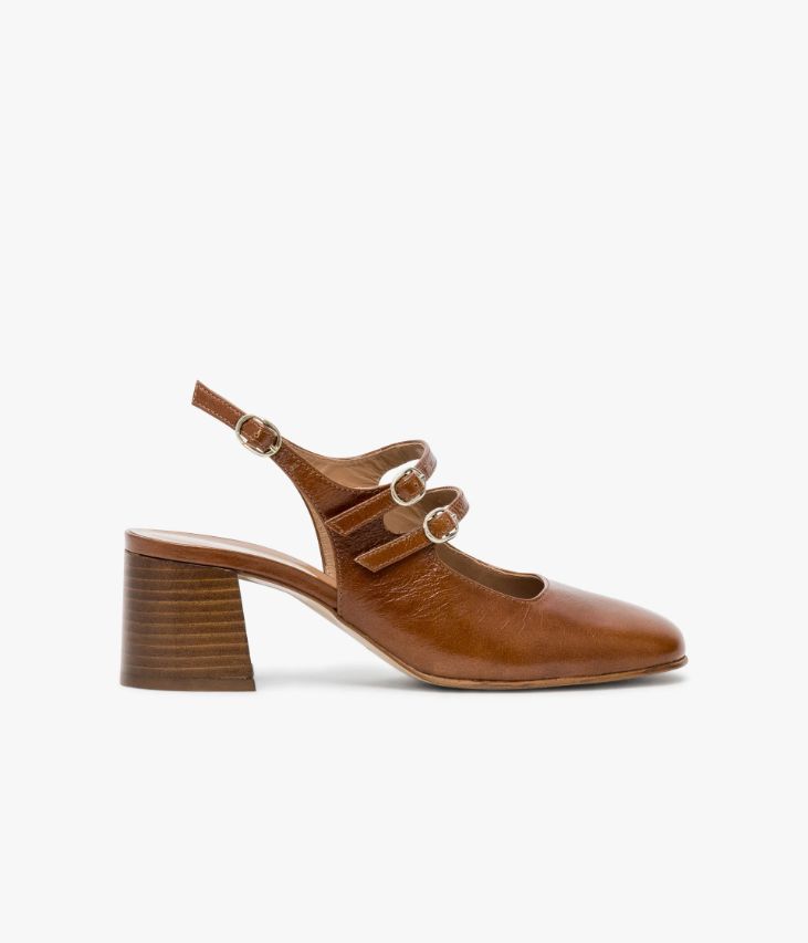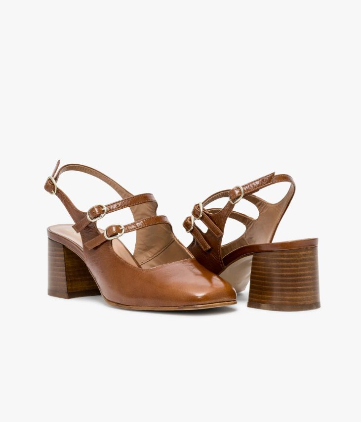 Un escarpin à bride arrière fabriqué avec soin au Portugal. Un modèle à la ligne ultra tendance avec son bout et son décolleté carrés, surmonté deux fines brides sur le cou-de-pied. Une chaussure élégante ajustable par une élégante boucle dorée sur chaque bride. Une chaussure entièrement doublée cuir avec semelle intérieure cuir dotée d’une fine mousse. Elle repose sur une semelle fine et un large talon lamellé collé. Son cuir vintage est un cuir d'aspect vieilli qui se patine avec le temps, un cuir brillant qui affiche un aspect plus ou moins froissé, dont la tonalité peut varier, et qui peut avoir un aspect "déjà porté".
