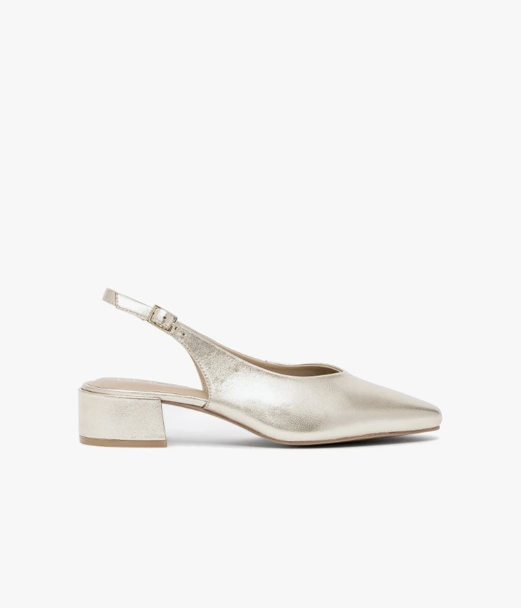 Un escarpin à bride arrière platine en cuir métallisé fabriquée avec le plus grand soin. Un modèle à bout pointu particulièrement élégant, fermé par une fine boucle dorée sur le côté. Il est posé sur une semelle fine et un talon enrobé parfaitement stable. Notre technologie Bocage Innovation vous garantit un bien-être inégalé. La semelle dissimule des élastiques qui permettent à votre chaussure de s’adapter à votre pied. Une chaussure de cérémonie entièrement doublée cuir avec semelle intérieure cuir dotée d’une fine mousse.