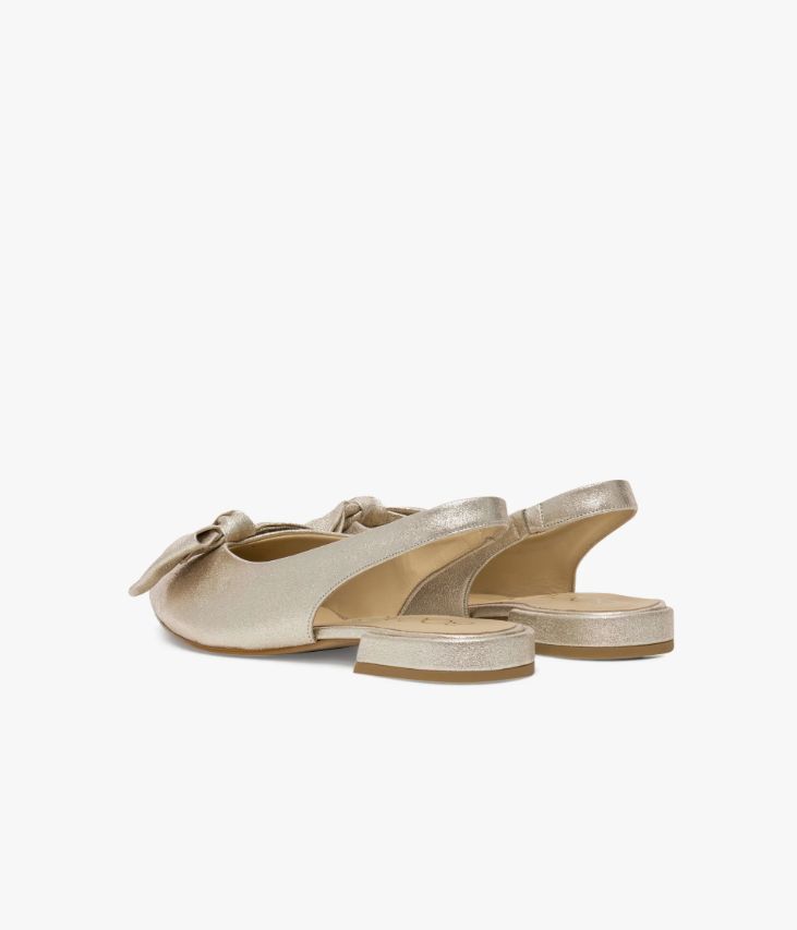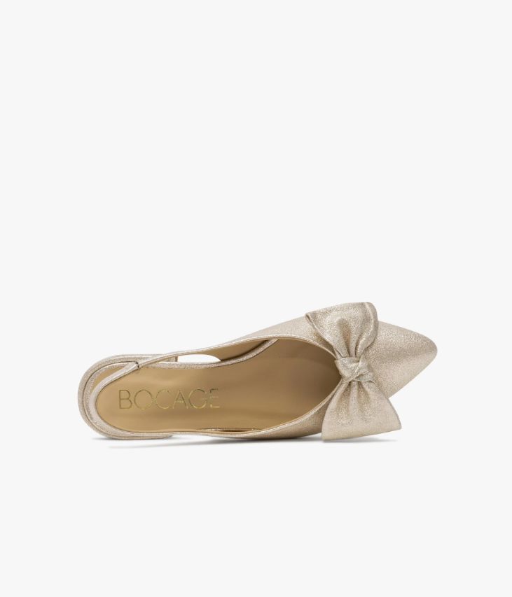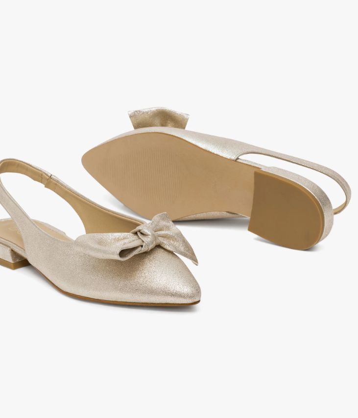 Un escarpin à bride arrière en cuir métallisé platine fabriqué avec soin au Portugal. Un modèle à bout pointu, orné d’un large nœud sur le dessus, idéal pour faire scintiller les looks de soirée. Une chaussure de cérémonie ultra confortable avec élastique d’aisance dissimulé sur la bride arrière, doublure cuir et semelle intérieure cuir moussée. Elle repose sur une semelle fine avec petit talon flare enrobé.