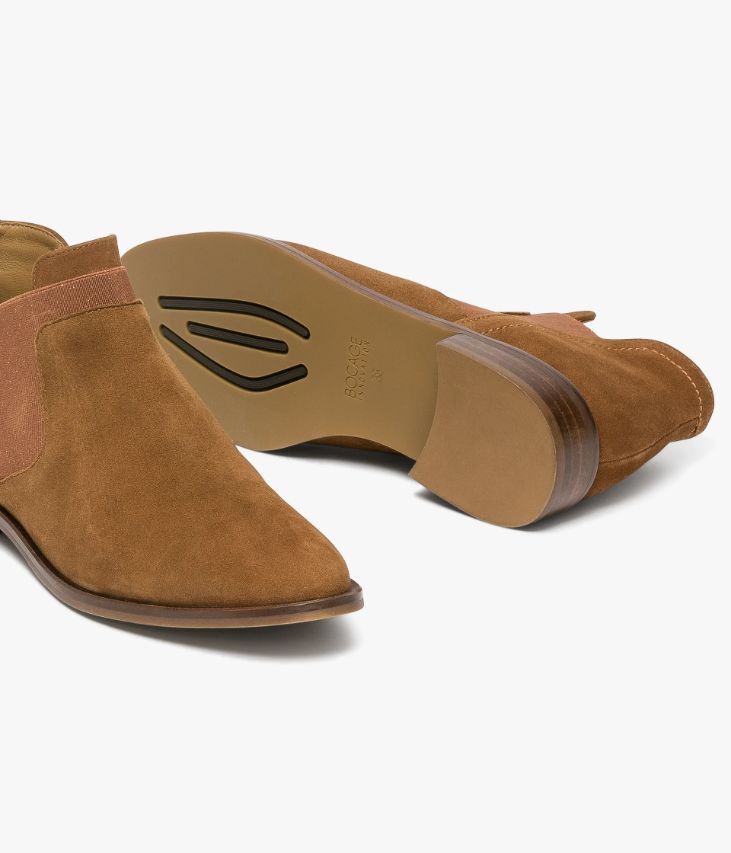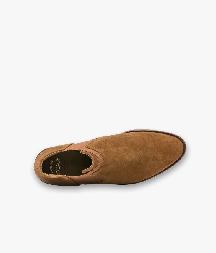Un low-boots cognac en cuir velours fabriquéavec soin dans notre propre atelier en France, au cœur du Maine et Loire (49).Cette chaussure assure élégance et confort avec son bout amande et sa largebande élastique pailletée sur l’avant inspirée des Chelsea. Une chaussure entièrementdoublée cuir avec semelle intérieure cuir dotée d’une fine mousse. Elle reposesur une semelle fine avec trépointe cuir et large talon lamellé collé. Notre technologie Bocage Innovation vous garantit unbien-être inégalé. La semelle dissimule des élastiques qui permettent à votrechaussure de s’adapter à votre pied.