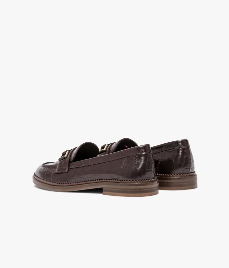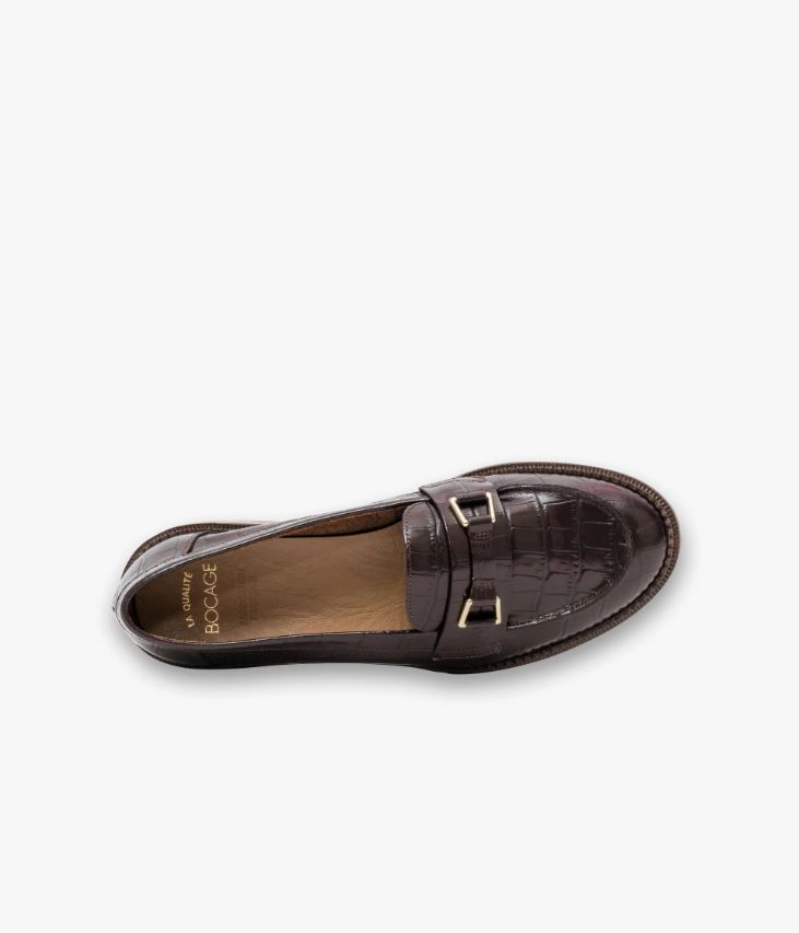 Un mocassin chocolat en cuir embossé façon croco fabriqué avec soin dans notre propre atelier en France, au cœur du Maine et Loire (49). Une chaussure élégante, inspirée d’un modèle classique, avec surpiqûre en relief sur le dessus et bandeau décoré de boucles dorées. Ce mocassin femme repose sur une semelle à double trépointe cuir crantée et petit talon lamellé collé. Une chaussure non doublée pour plus de souplesse, avec semelle intérieure cuir dotée d’une fine mousse. Notre technologie Bocage Innovation vous garantit un bien-être inégalé. La semelle dissimule des élastiques qui permettent à votre chaussure de s’adapter à votre pied. Chaussant étroit, convient aux pieds fins.