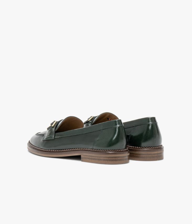 Un mocassin vert émeraude en cuir lisse fabriqué avec soin dans notre propre atelier en France, au cœur du Maine et Loire (49). Une chaussure élégante, inspirée d’un modèle classique, avec surpiqûre en relief sur le dessus et bandeau décoré de boucles dorées. Ce mocassin femme repose sur une semelle à double trépointe cuir crantée et petit talon lamellé collé. Une chaussure non doublée pour plus de souplesse, avec semelle intérieure cuir dotée d’une fine mousse. Notre technologie Bocage Innovation vous garantit un bien-être inégalé. La semelle dissimule des élastiques qui permettent à votre chaussure de s’adapter à votre pied. Son cuir vintage est un cuir d'aspect vieilli qui se patine avec le temps, un cuir brillant qui affiche un aspect plus ou moins froissé, dont la tonalité peut varier, et qui peut avoir un aspect "déjà porté".