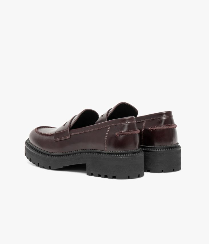 Un mocassin en cuir chocolat fabriqué avec soin au Portugal. Fidèle aux codes, il possède une surpiqûre en relief sur le plateau et au talon, ainsi qu’un bandeau perforé. Ce modèle repose sur une épaisse semelle crantée avec double trépointe ciselée qui lui confère une allure contemporaine. Un mocassin chunky entièrement doublé cuir avec semelle intérieure cuir dotée d'une fine mousse. Semelle 3 cm.