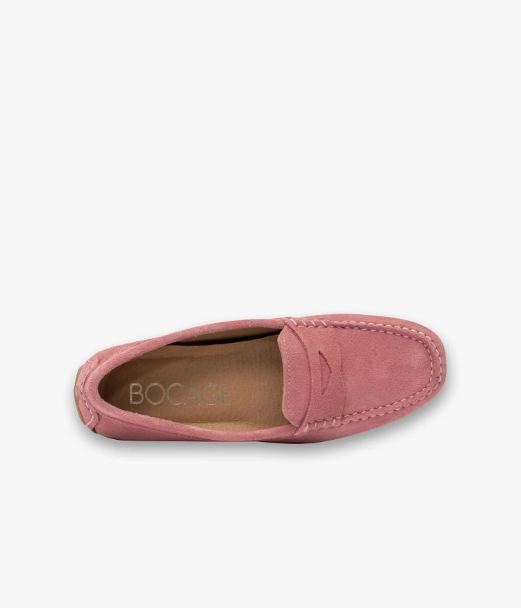 Un mocassin en cuir velours rose poudré fabriqué avec soin au Portugal. Un modèle au look intemporel avec surpiqûre en relief sur le plateau, bandeau perforé fixé par des points selliers et empiècement au talon avec logo embossé. Ce mocassin femme est entièrement doublé cuir et possède une semelle intérieure cuir moussée amovible. Cette chaussure bénéficie d’un cousu mocassin intégral, une technique qui consiste à confectionner la première et la doublure dans une seule pièce de cuir, permettant ainsi l’obtention d’une chaussure très souple.