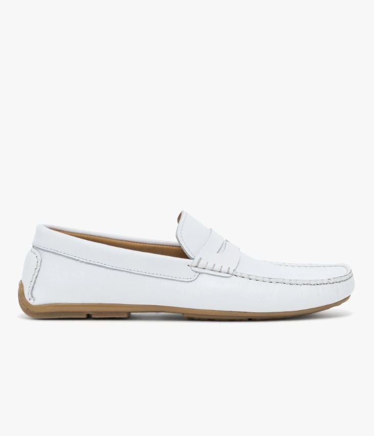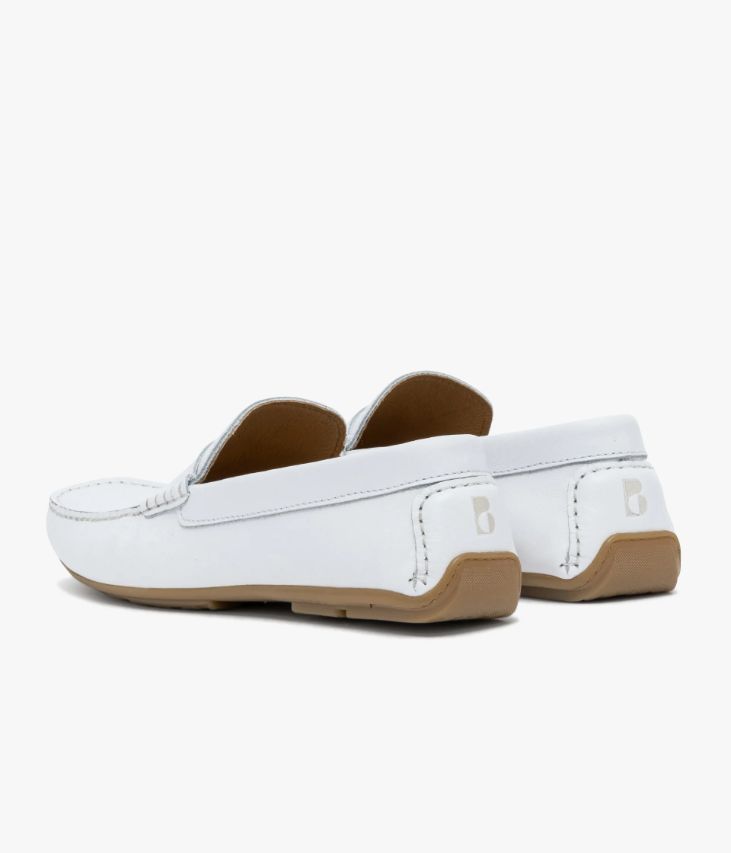Un mocassin en cuir blanc fabriqué avec soin au Portugal. Dans ce coloris immaculé, cet intemporel s'accordera aussi bien à des looks décontractés qu’à des tenues sophistiquées. Il affiche une couture en relief sur le dessus, un bandeau perforé agrémenté de piqûres sellier et un empiècement rapporté au talon avec logo embossé. Une chaussure entièrement doublée cuir avec semelle intérieure cuir moussée amovible. Cette chaussure bénéficie d’un cousu mocassin intégral, une technique qui consiste à confectionner la première et la doublure dans une seule pièce de cuir, permettant ainsi l’obtention d’une chaussure d’été très souple. Il repose sur une semelle souple et légère avec monogramme Bocage.