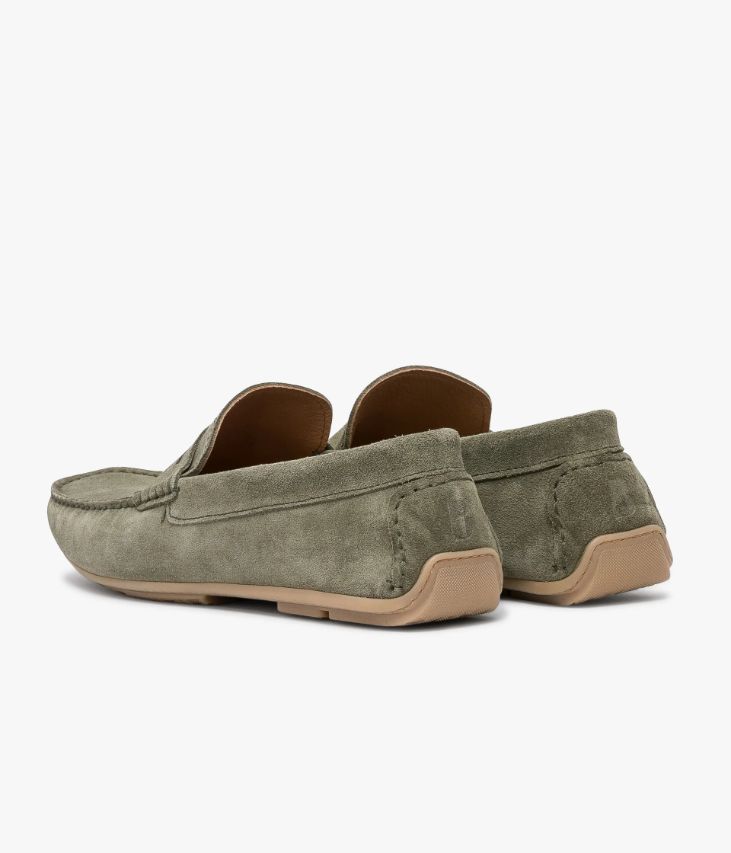 Un mocassin en cuir velours vert sauge fabriqué avec soin au Portugal. Un intemporel facile à associer avec l’ensemble du vestiaire masculin. Il affiche une couture en relief sur le dessus, un bandeau perforé agrémenté de piqûres sellier et un empiècement rapporté au talon avec logo embossé. Une chaussure entièrement doublée cuir avec semelle intérieure cuir moussée amovible. Cette chaussure bénéficie d’un cousu mocassin intégral, une technique qui consiste à confectionner la première et la doublure dans une seule pièce de cuir, permettant ainsi l’obtention d’une chaussure d’été très souple. Il repose sur une semelle souple et légère.