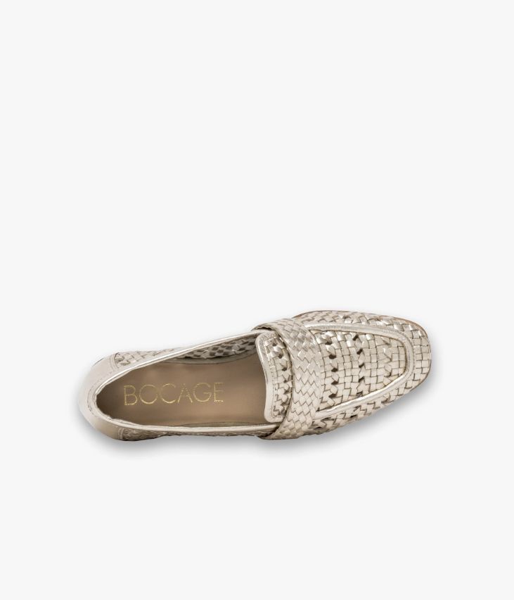Un mocassin platine fabriqué avec le plus grand soin dans un cuir métallisé tressé et ajouré laissant deviner la peau. Ce mocassin arbore une surpiqûre en relief sur le dessus et un empiècement fermé au talon. Sur ce modèle à la ligne intemporelle, le traditionnel bandeau a été remplacé par une bride tressée fixée sur la semelle. Une chaussure avec semelle intérieure cuir posée sur une semelle fine à bout carré avec trépointe cuir et un talon plat. Notre technologie Bocage Innovation vous garantit un bien-être inégalé. La semelle dissimule des élastiques qui permettent à votre chaussure de s’adapter à votre pied.