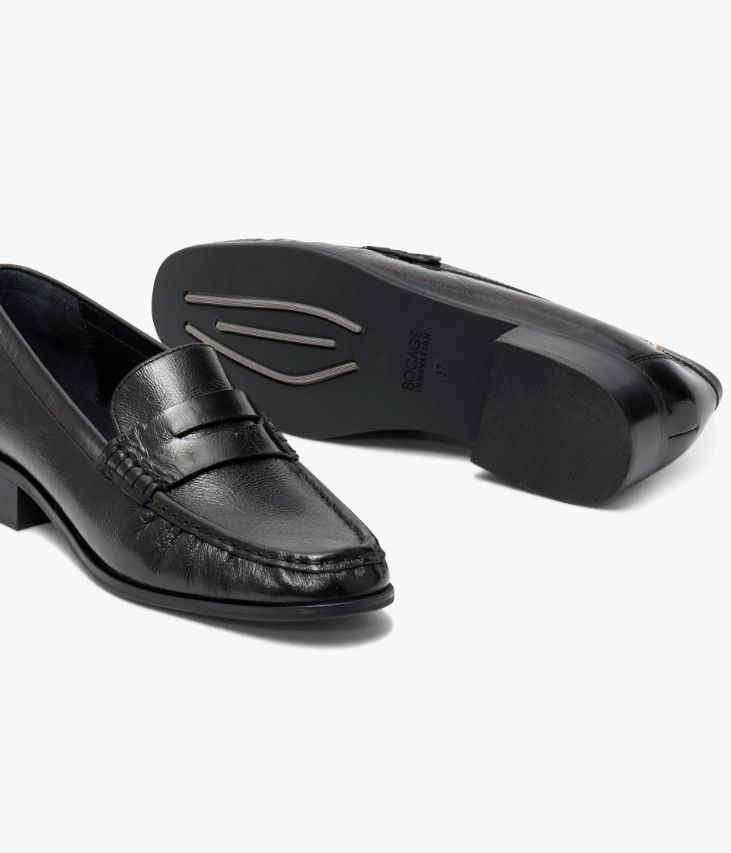 Un mocassin noir en cuir vintage fabriqué avec le plus grand soin. Une chaussure plissée sur l’avant, avec semelle ultra souple, conçu pour allier confort et élégance. Son bandeau perforé est souligné par d’élégantes piqûres sellier. Un mocassin entièrement doublé cuir avec semelle intérieure cuir dotée d’une fine mousse. Il repose sur une semelle fine et un talon lamellé collé. Notre technologie Bocage Innovation vous garantit un bien-être inégalé. La semelle dissimule des élastiques qui permettent à votre chaussure de s’adapter à votre pied. Cette chaussure bénéficie d’un semi cousu mocassin, offrant une grande souplesse sur la partie avant. Son cuir vintage est un cuir d'aspect vieilli qui se patine avec le temps, un cuir brillant qui affiche un aspect plus ou moins froissé, dont la tonalité peut varier, et qui peut avoir un aspect "déjà porté".