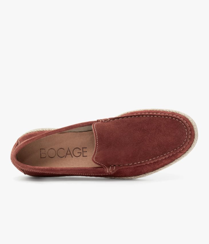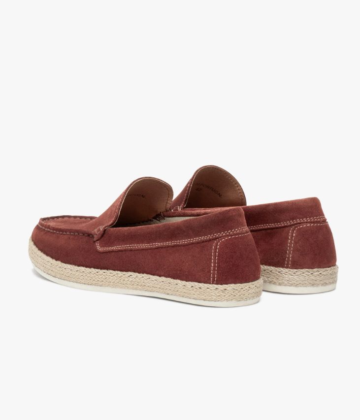 Un mocassin en cuir velours rouille fabriqué avec soin au Portugal. Un modèle estival et décontracté posé sur une semelle en caoutchouc bordée de corde tressée, inspirée des espadrilles. Une chaussure doublée cuir et textile avec semelle intérieure cuir dotée d’une fine mousse. Cette paire bénéficie d’un cousu latéral qui consiste à relier la tige et la semelle. Cette technique apporte une réelle robustesse et souplesse au produit.
