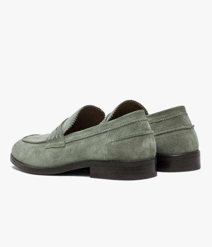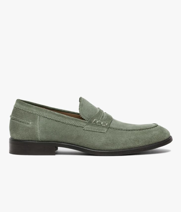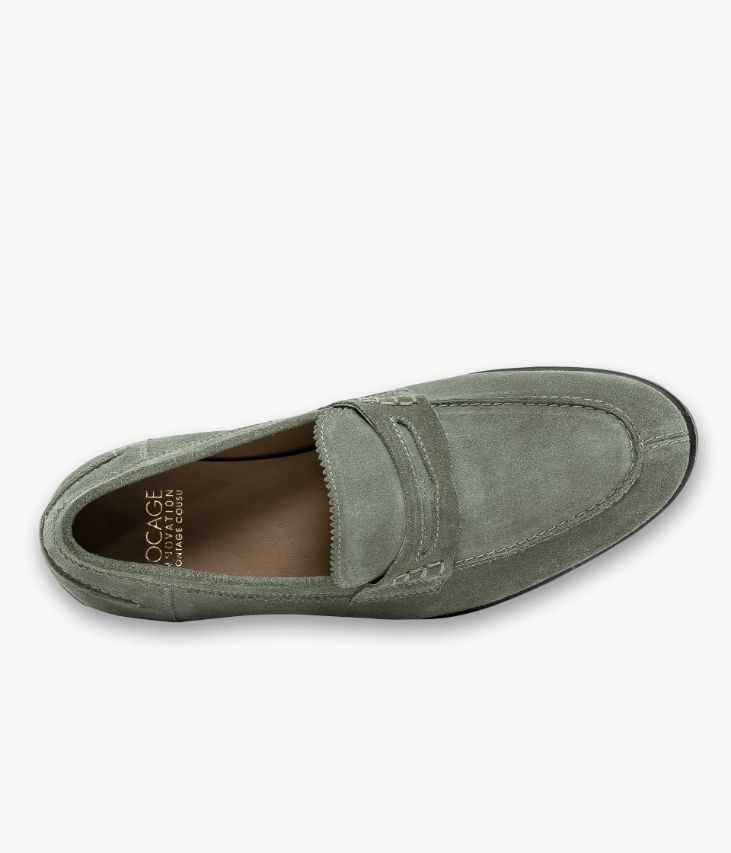 Un mocassin en cuir velours vert sauge fabriqué avec le plus grand soin. Une chaussure de ville à l’allure intemporelle avec une couture en relief sur le dessus et au talon, un bandeau perforé avec piqûres sellier et de jolies finitions dentelées sur la languette et le col. Une chaussure élégante entièrement doublée cuir avec semelle intérieure cuir dotée d’une fine mousse. Elle est posée sur une semelle fine avec trépointe débordante. Notre technologie Bocage Innovation vous garantit un bien-être inégalé. La semelle dissimule des élastiques qui permettent à votre chaussure de s’adapter à votre pied. Cette paire bénéficie du cousu Blake, une couture unique prenant, à la fois, la semelle intérieure, la semelle extérieure et la tige de la chaussure. Ce montage est apprécié pour la finesse de la semelle.