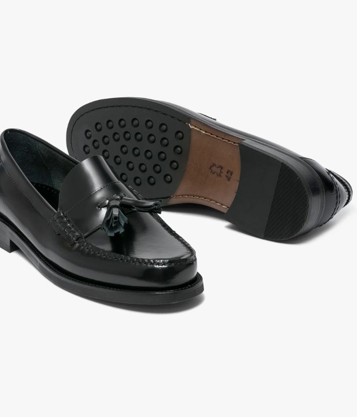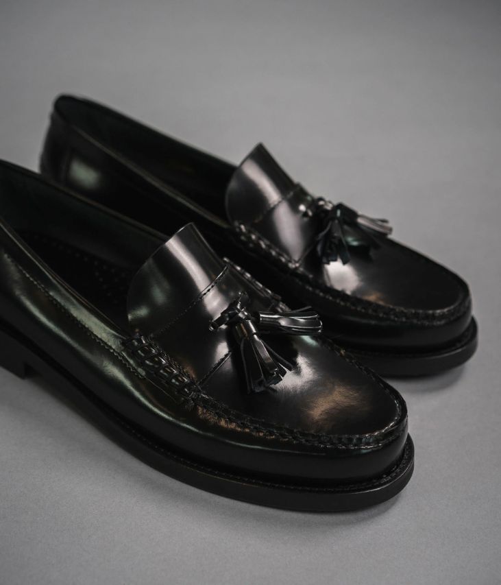 Un mocassin qui reprend les codes de l'emblématique Penny Loafer twisté avec des pampilles pour une allure preppy.