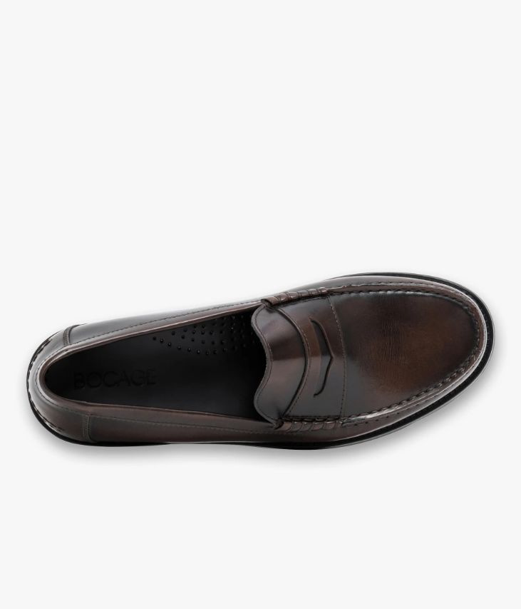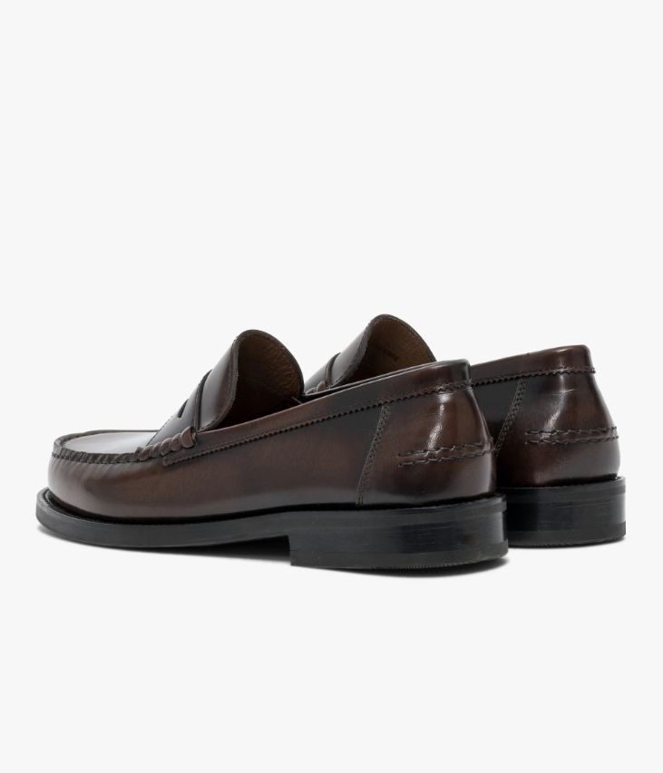 Un mocassin en cuir glacé acajou fabriqué avec soin au Portugal. Un modèle aux reflets patinés qui s’impose comme un intemporel du vestiaire masculin, s’accordant avec les tenues chics comme avec les looks décontractés. Il possède une surpiqûre en relief sur le plateau et un bandeau perforé cousu. Des surpiqûres au talon et des finitions crantées sur le col ajoutent une touche contemporaine. Une chaussure entièrement doublée cuir avec semelle intérieure cuir avec renfort sous la voute plantaire. Elle repose sur une semelle débordante intégrant une partie cuir et une couche d’usure antidérapante, avec trépointe cuir piquée. Cette chaussure bénéficie d’un semi cousu mocassin, offrant une grande souplesse sur la partie avant.