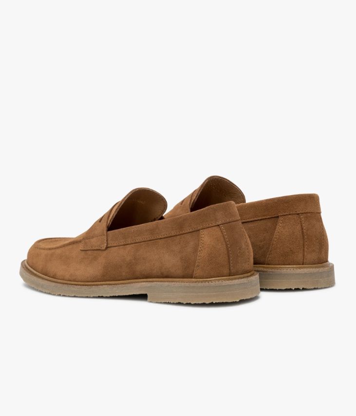 Un mocassin en cuir velours châtaigne fabriqué avec soin au Portugal. Un modèle élégant avec bout amande et bandeau ajouré sur le dessus. Une chaussure entièrement doublée avec semelle intérieure cuir dotée d’une fine mousse. Elle repose sur une semelle en crêpe avec trépointe cuir ciselée.