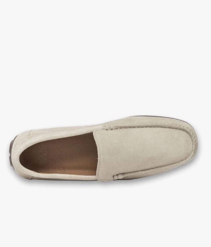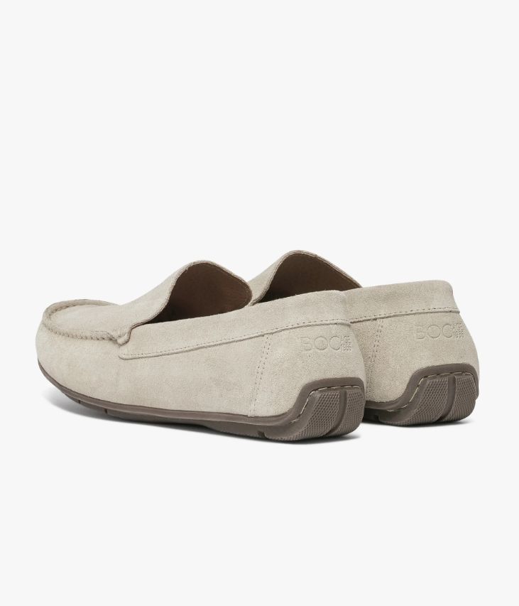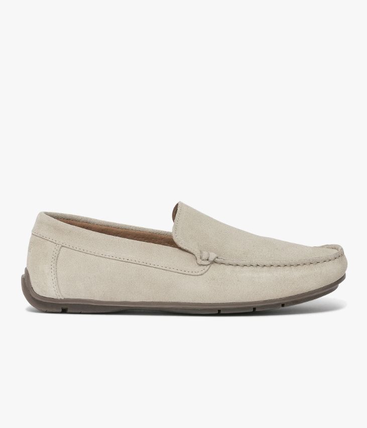 Un mocassin écru en cuir velours fabriqué avec soin au Portugal. Une chaussure à bout carré élégante et décontractée. Elle est entièrement doublée cuir avec semelle intérieure cuir amovible ultra confortable, et repose sur une semelle souple. Cette paire bénéficie du cousu Blake, une couture unique prenant, à la fois, la semelle intérieure, la semelle extérieure et la tige de la chaussure. Ce montage est apprécié pour la finesse de la semelle. Notre technologie Bocage Innovation vous garantit un bien-être inégalé. La semelle dissimule des élastiques qui permettent à votre chaussure de s’adapter à votre pied.