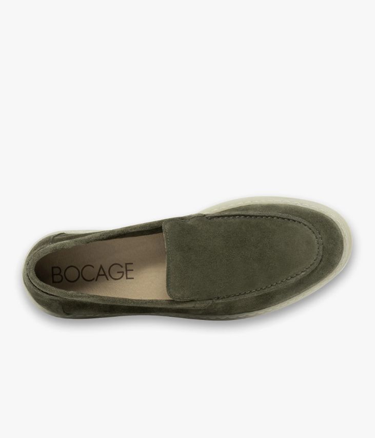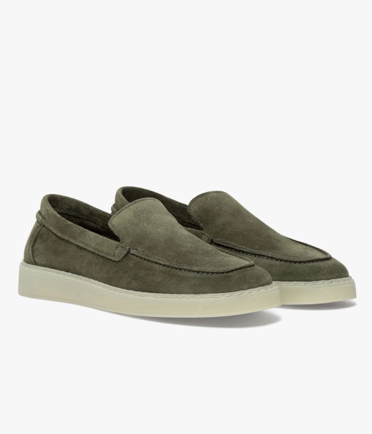 Un mocassin kaki en cuir velours fabriqué avec soin au Portugal. Il arbore une surpiqûre en relief sur le dessus et un empiècement rapporté au talon. Ce modèle souple et confortable accompagnera les tenues estivales avec décontraction. Une chaussure non doublée pour plus de souplesse, avec semelle intérieure cuir moussée amovible. Cette paire bénéficie d’un cousu latéral qui consiste à relier la tige et la semelle. Cette technique apporte une réelle robustesse et souplesse au produit.