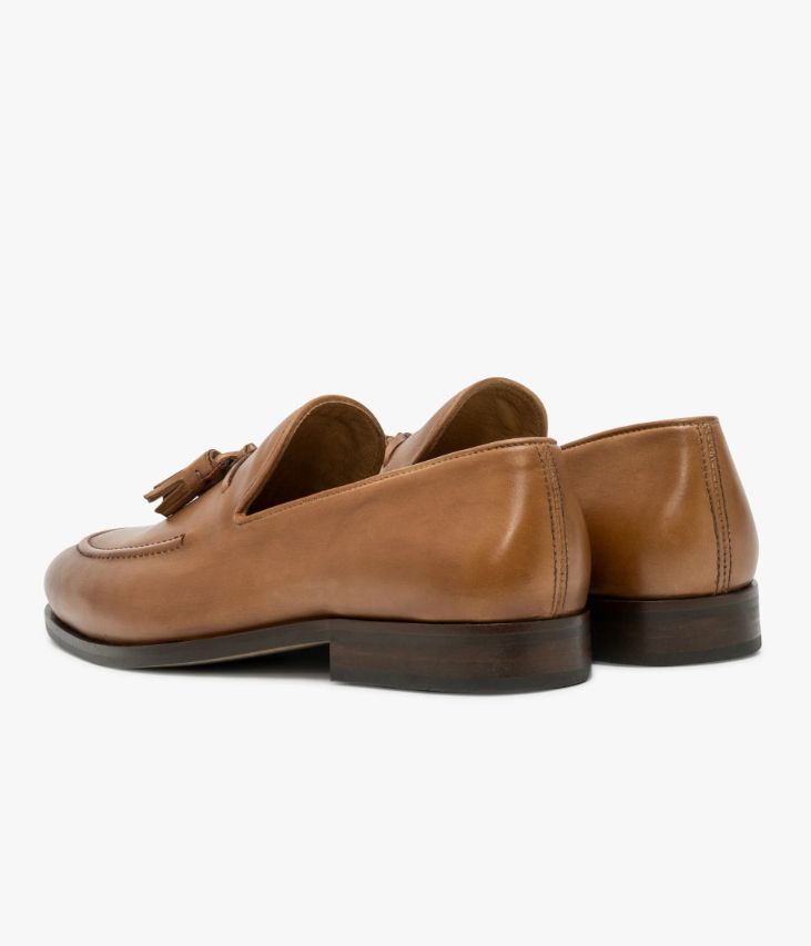 Un mocassin en cuir cognac fabriqué avec soin au Portugal. Un modèle ultra chic qui compte parmi les essentiels du vestiaire masculin. Sa ligne effilée avec bout amande est sublimée par une surpiqûre en relief et des pompons. Une chaussure de costume entièrement doublée cuir avec semelle intérieure cuir moussée. Elle repose sur une semelle lisse avec patin antidérapant et trépointe cuir. Cette paire bénéficie du cousu Blake, une couture unique prenant, à la fois, la semelle intérieure, la semelle extérieure et la tige de la chaussure. Ce montage est apprécié pour la finesse de la semelle.