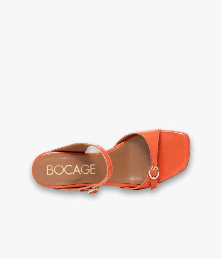 Une mule en cuir verni orange fabriquée avec le plus grand soin. Cette mule à talon ultra féminine sublime le pied tout en offrant un bon maintien grâce à deux fines brides ajustables à l’aide d’une boucle dorée ovale. Elle s’enfile facilement et repose sur une semelle plate à bout carré et un talon flare enrobé de cuir aux accents vintage. Une sandale femme entièrement doublée cuir avec semelle intérieure cuir dotée d’une fine mousse. Ce cuir Naplak particulièrement souple peut présenter un aspect légèrement froissé.