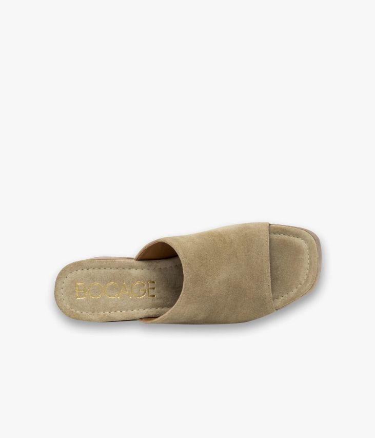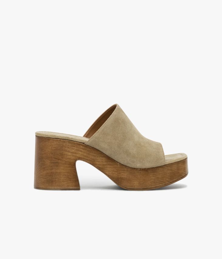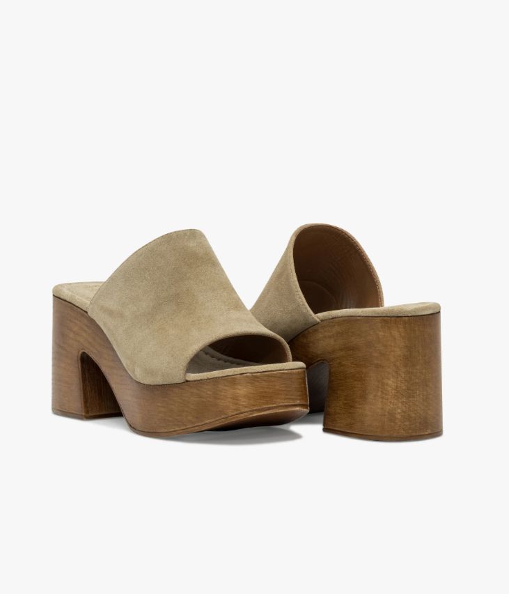 Une mule à talon en cuir velours sable fabriquée avec soin en Italie. Une chaussure inspirée du vestiaire des années 70 posée sur une imposante semelle aspect bois à bout carré et large talon. Cette mule sabot à bout ouvert est doublée cuir et dotée d’une semelle intérieure cuir moussée très confortable. Semelle 3,5 cm.
