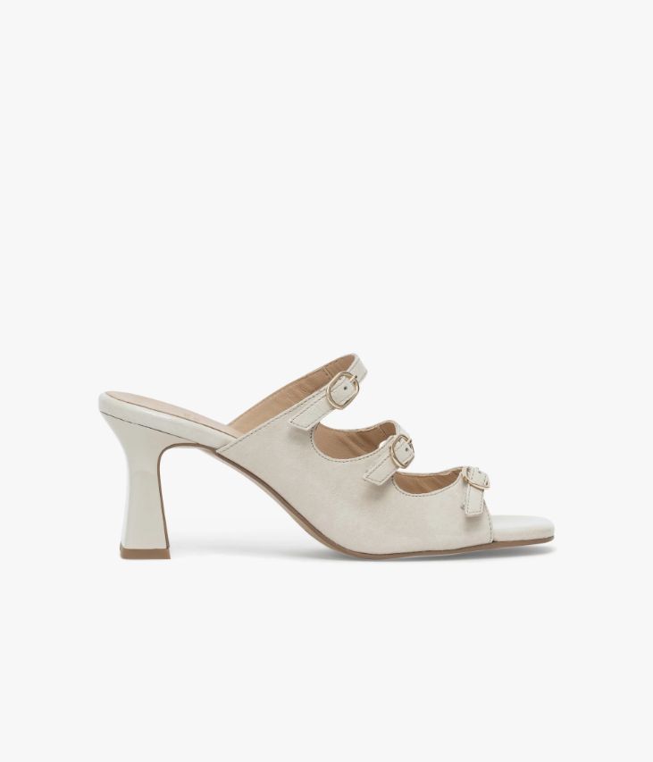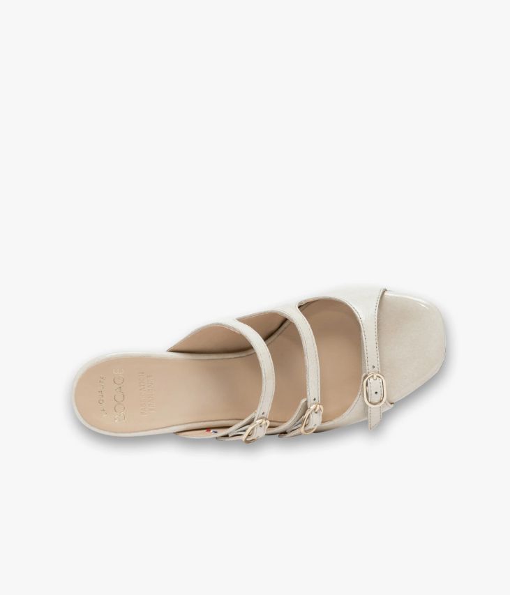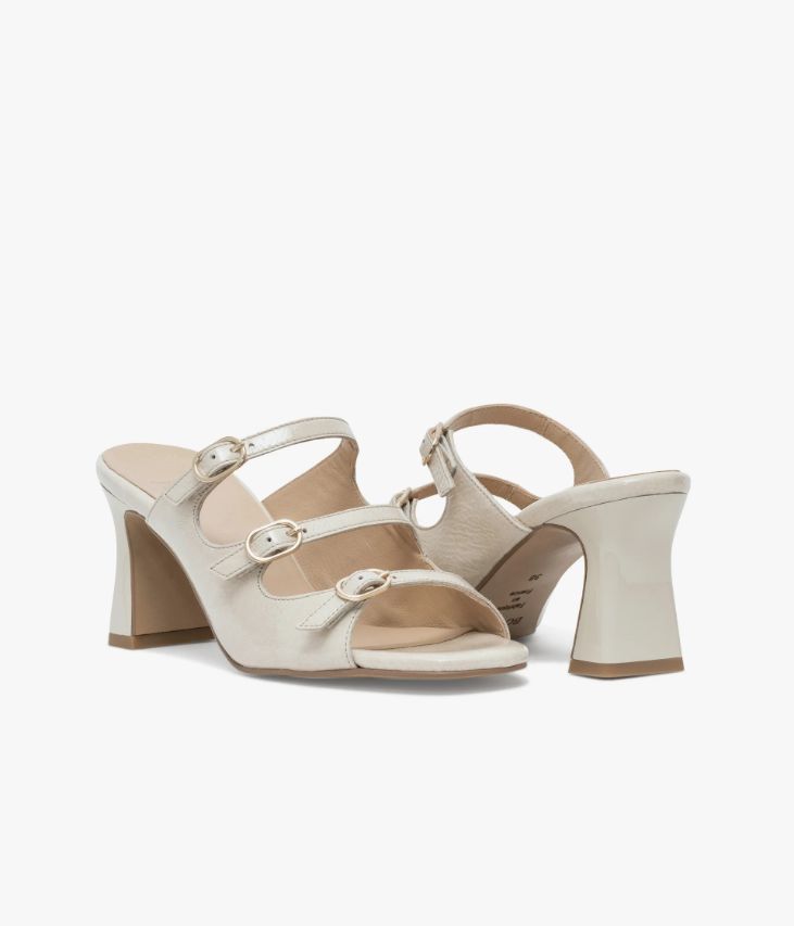 Une mule à talon écru en cuir verni fabriquée avec soin dans notre propre atelier en France, au cœur du Maine et Loire (49). Ce modèle ultra féminin sublime le pied par de fines brides fermées par des boucles dorées, permettant un ajustement parfait. Une chaussure entièrement doublée cuir avec semelle intérieure cuir dotée d’une fine mousse. Elle repose sur une semelle fine et un talon à gorge laqué très élégant. Ce cuir Naplak particulièrement souple peut présenter un aspect légèrement froissé.