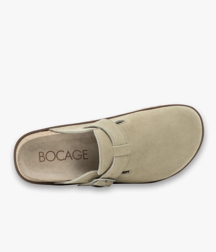 Une mule en cuir velours beige fabriquée avec le plus grand soin. Confortable et facile à enfiler, cette mule pour homme possède des fentes sur le dessus et une bride ajustable par boucle métallique. Doublée cuir, elle possède une semelle intérieure en cuir de forme anatomique et repose sur une semelle extérieure crantée contenant du liège, avec trépointe cuir.