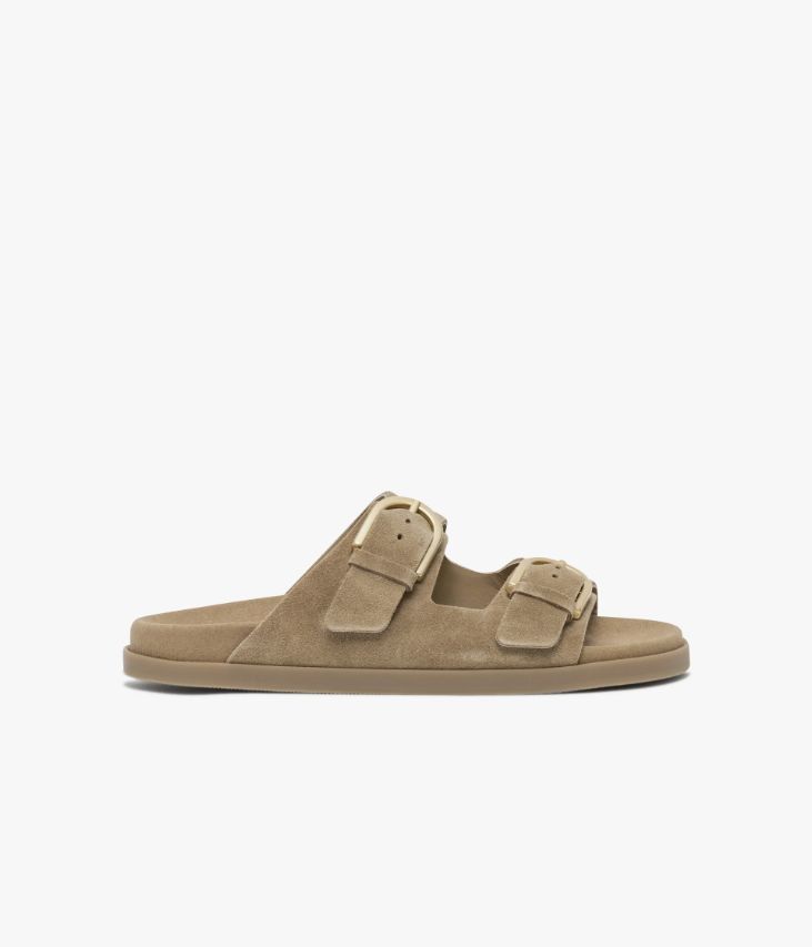 Une mule beige en cuir velours fabriquée avec soin au Portugal. Elle affiche une allure épurée totalement tendance et accompagnera toutes les tenues estivales. Ses brides s’ajustent grâce à de grosses boucles dorées en métal brossé. Doublée cuir et dotée d’une semelle moussée de forme anatomique, cette mule offre un grand confort de marche.