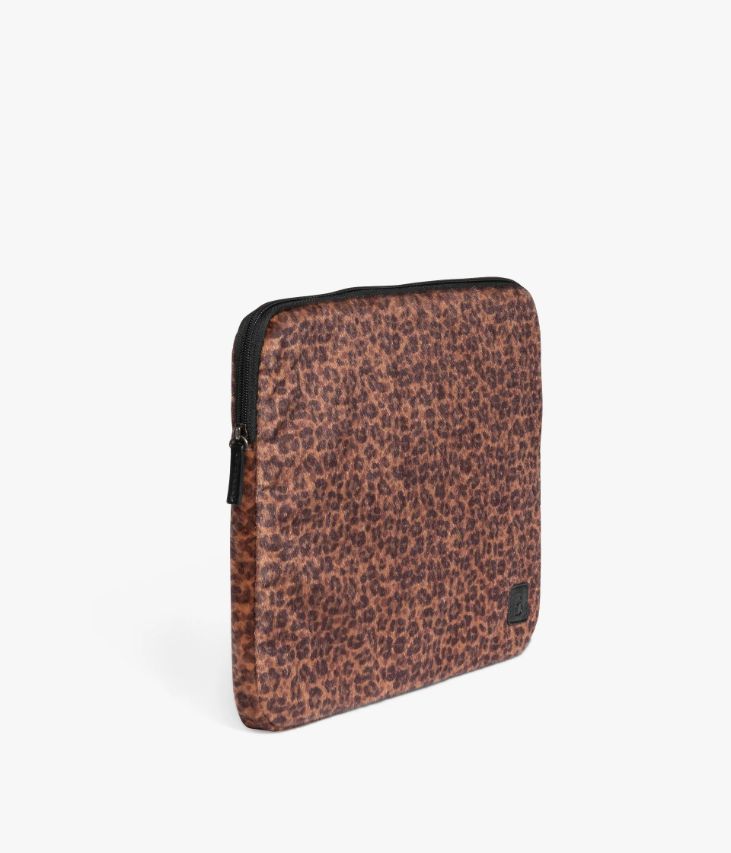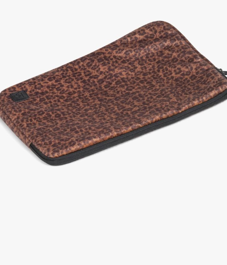 Une jolie pochette d'ordinateur à motif léopard confectionnée dans une matière façon poil de poulain. Elle possède un compartiment rembourré offrant une bonne protection de votre ordinateur, une poche zippée et une poche plaquée. Elle est dotée d'un zip offrant une large ouverture. Doublure en polyester recyclé. Logo cousu sur l'avant. Dimensions : H29xL38xP 2,5 cm.