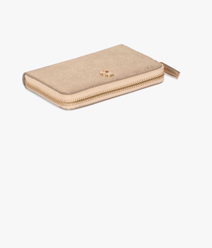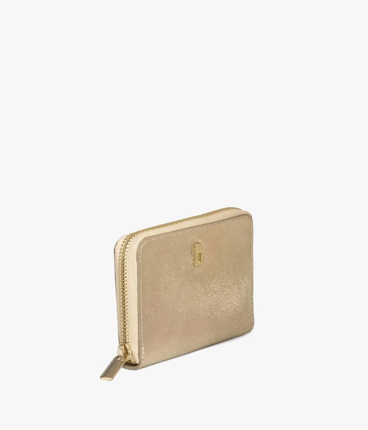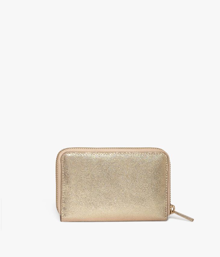 Un joli porte-monnaie en cuir métallisé doré sublimé par un logo métallique. Fermé par un zip, il est pratique et offre de nombreux compartiments pour ranger les cartes bancaires et une poche zippée pour la monnaie. Un accessoire scintillant à glisser dans tous les sacs à main. Doublure coton. Dimensions : H9xL13,5xP2 cm. Accessoire de sac livré dans un pochon en coton.