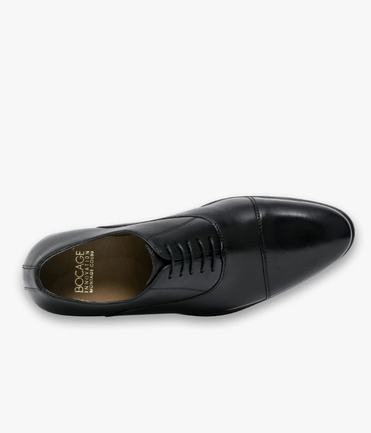 Richelieu noir en cuir lisse cousu Blake. Ce Richelieu homme noir en cuir lisse est une pièce incontournable du shoesing masculin, à posséder absolument pour une allure élégante. Sa ligne sobre, son empiècement cuir au bout du pied et ses doubles surpiqûres lui assurent un style irréprochable. Cette chaussure possède la technologie brevetée Bocage Innovation, ainsi votre chaussure s'adaptera aux largeurs de votre pied et vous garantira un bien-être inédit. Sa semelle cousu Blake offre une élégance et une finesse au soulier. Sa construction est extrêmement résistante car la couture prend à la fois la semelle intérieure, extérieure et la tige. Richelieu homme entièrement doublé cuir avec semelle intérieure cuir. On peut l'associer avec tous nos pantalons de costumes.