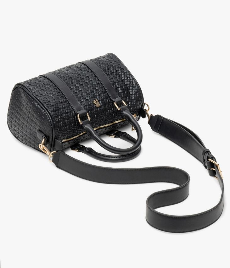 L’indémodable sac bowling revisité dans une jolie matière synthétique aspect tressé et orné d’un joli logo doré. Un sac souple au toucher, fermé par un zip doré sur le dessus. Il offre un compartiment et deux pochettes intérieures. Doté d’anses rigides, il se porte à la main pour une allure chic ou de travers grâce à la bandoulière amovible pour un look plus décontracté. Doublure en polyester recyclé. Dimensions : H15 x L26 x P11.