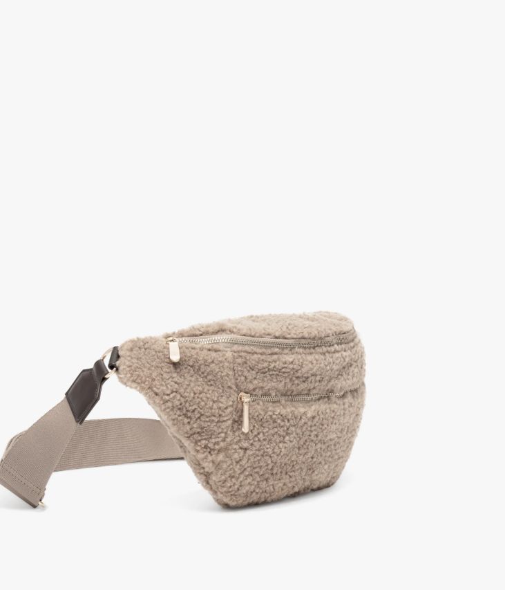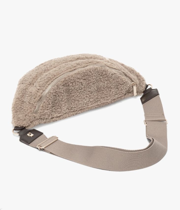Un sac banane en maille sherpa cappuccino à l’allure réconfortante. Une banane cocooning fermée par deux zips métalliques, offrant un grand compartiment avec pochette intérieure zippée et une poche sur l’avant. Entièrement doublée, elle est dotée d’une bandoulière en coton fixée par une boucle dorée et ajustable en longueur. Pratique, elle se porte croisée et ajoute une touche tendance à toutes les tenues.