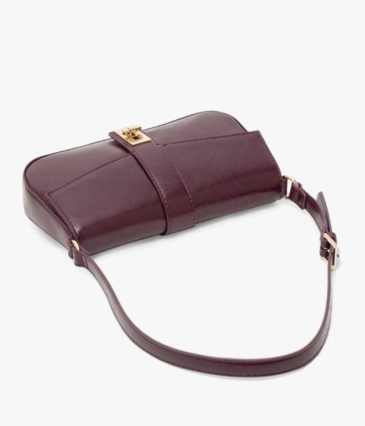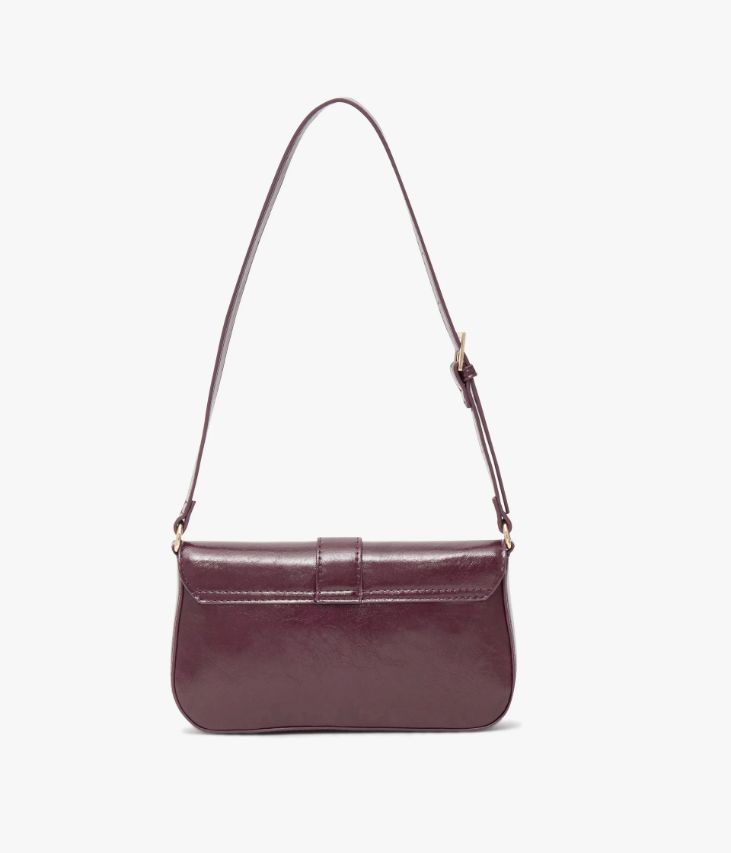 Ce joli petit sac lie de vin ajoutera une touche de sophistication aux looks du quotidien et accompagnera à merveille les tenues de cérémonie. Un sac rectangle avec rabat fermé par un joli fermoir tourniquet doré. Il possède un compartiment zippé et deux pochettes intérieures. Doté d’une bandoulière ajustable en longueur grâce à une boucle à ardillon, il se porte sur l’épaule. Doublure en polyester recyclé. Dimensions : H14 x L25 x P4,5 cm.