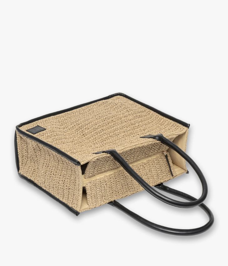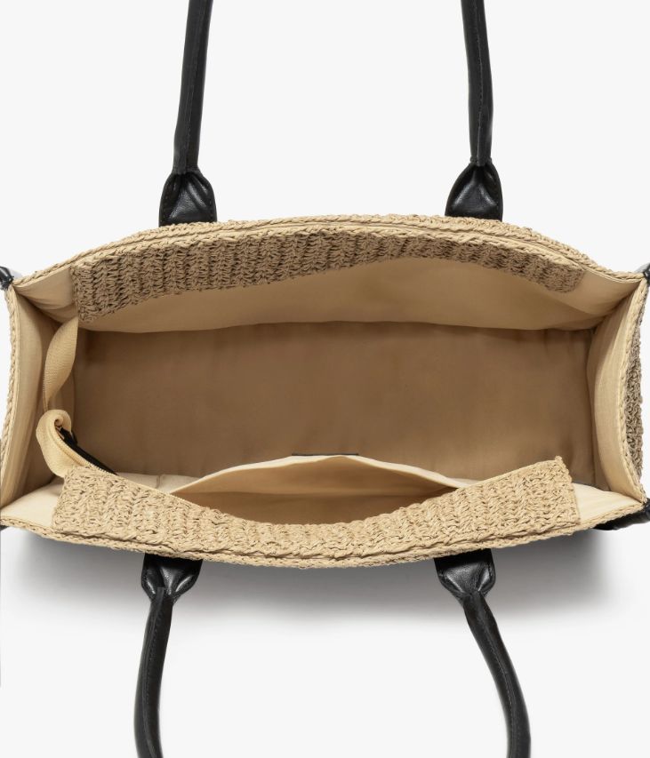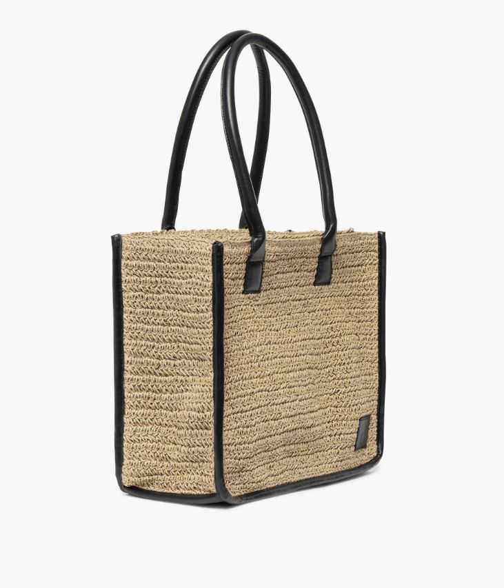 Ce sac cabas en paille de papier, issu d’une fabrication artisanale, surfe sur la tendance naturelle. Il est rehaussé de touches de cuir synthétique noir ajoutant un sublime contraste. Ce cabas se ferme par un zip sur le dessus et offre un grand compartiment et une poche plaquée, permettant de transporter tous les indispensables du quotidien. Il affiche un format idéal pour transporter des documents A4, un ordinateur portable ou une tablette. Doté de jolies anses, il se porte sur le bras ou sur l’épaule. Dimensions H28 x L36 x P12 cm.