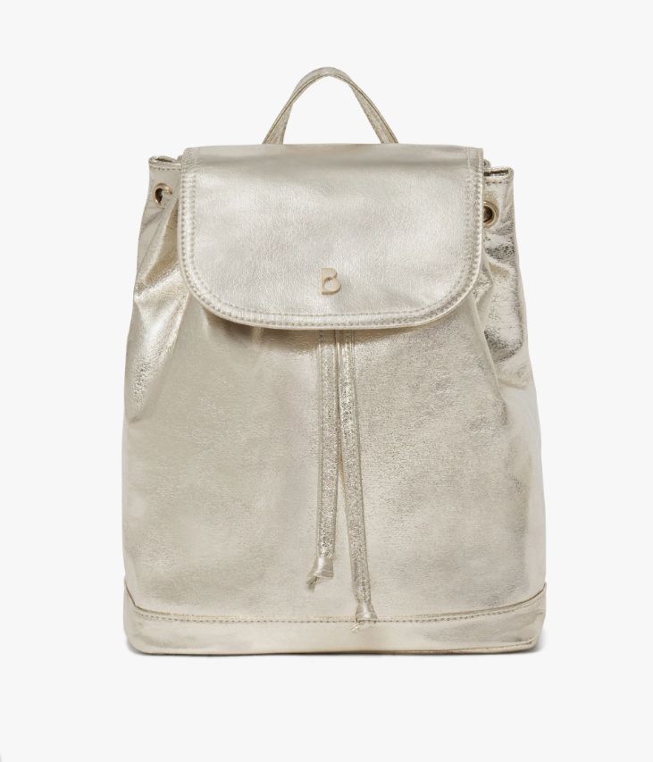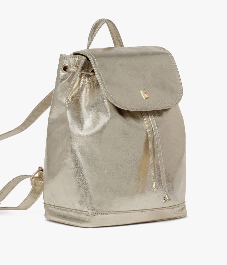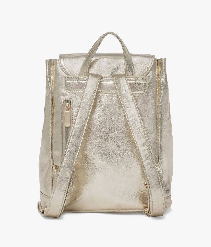Un sac à dos platine réalisé dans une matière synthétique souple aspect craquelé. Un sac scintillant qui rehaussera les tenues du quotidien d’une jolie touche d’éclat. Il possède un grand compartiment, deux pochettes intérieures et une poche zippée au dos. Ce sac à dos se ferme à l’aide d’un cordon coulissant et d’un rabat avec bouton aimanté. Il est doté d’une petite anse et de bandoulières ajustables à l’aide de boucles métalliques. Doublure en polyester recyclé. Dimensions H28 x L24 x P12 cm.