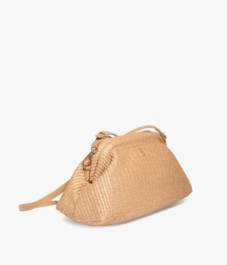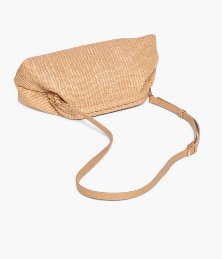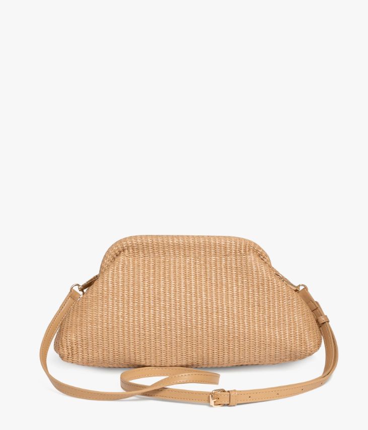 Un joli sac en raphia synthétique beige totalement dans la tendance naturelle. Il arbore une allure rétro avec sa fermeture porte-monnaie et se distingue par un élégant logo doré. Ce sac se porte sur l’épaule ou croisé grâce à une bandoulière ajustable en longueur et amovible. Doublure en polyester recyclé. Un compartiment et une pochette zippée.Dimensions : H15xL31xP12 cm.