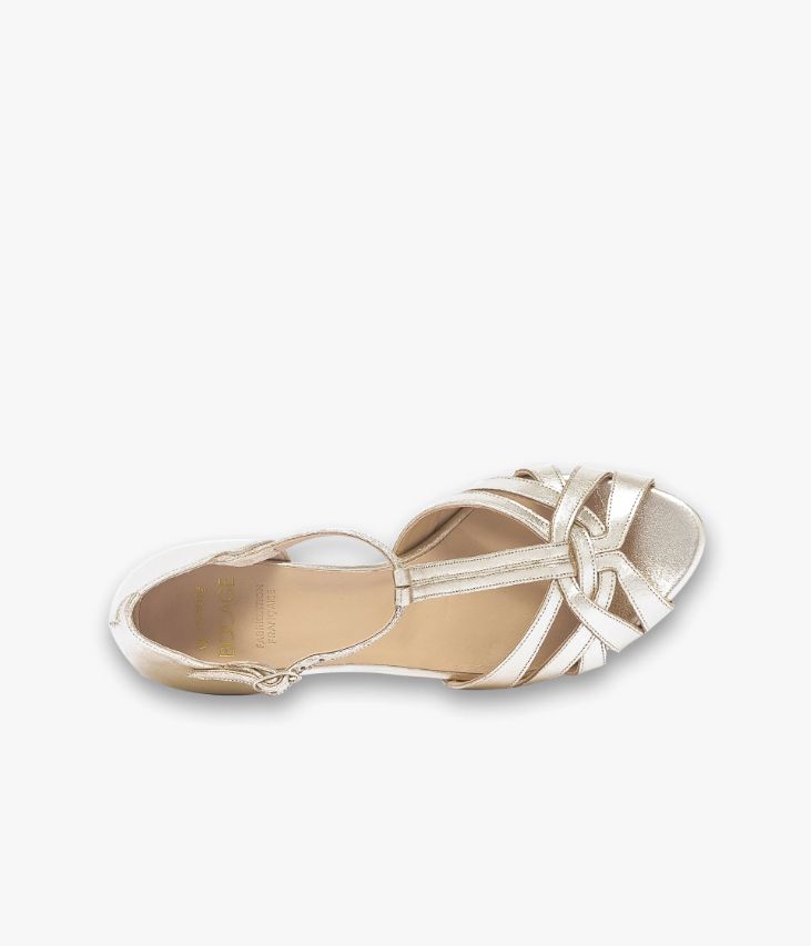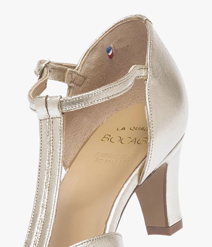 Un escarpin en cuir brillant doré fabriqué avec soin dans notre atelier en France, au coeur du Maine et Loire (49). Une chaussure de cérémonie forme Salomé avec talon fermé qui offre un excellent maintien. Elle est entièrement doublée cuir avec semelle intérieure cuir et repose sur une semelle fine et talon enrobé parfaitement stable. Fermeture par boucle dorée.