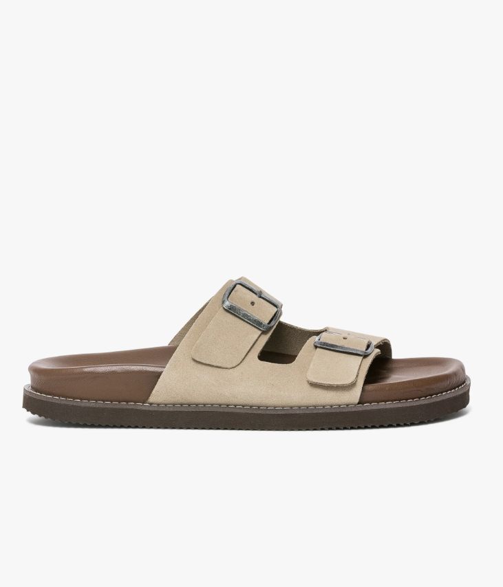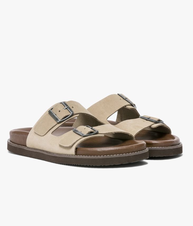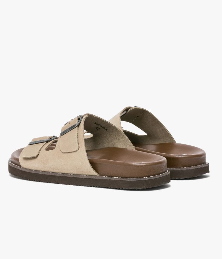 Une sandale beige en cuir velours fabriquéeavec soin dans notre atelier en Espagne. Unechaussure ouverte dotée de deux larges brides ajustables par boucle ton sur ton. Elleoffre un grand confort grâce à sa semelle intérieure anatomique en cuir dotée d’unefine mousse. Elle estposée sur une semelle antidérapante avec trépointe surpiquée.