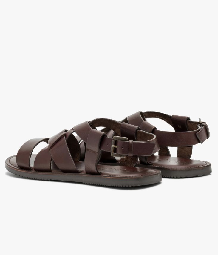 Une sandale en cuir chocolat fabriquée avec le plus grand soin. Avec son élégant jeu de brides, cette sandale pour homme arbore une allure résolument contemporaine. Non doublée pour plus de souplesse, elle offre un excellent confort et s’ajuste à l’aide d’une boucle en métal vieilli au niveau du talon. Cette sandale homme est dotée d’une semelle intérieure cuir moussée et repose sur une semelle fine avec couche d’usure crantée offrant une parfaite adhérence sur tous les sols.