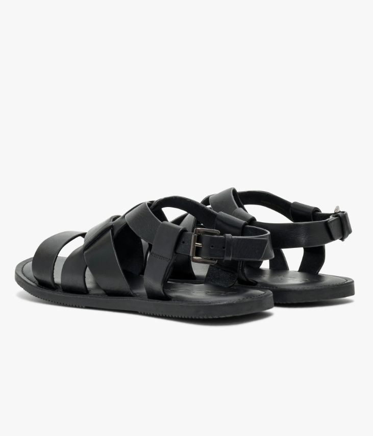 Une sandale en cuir noir fabriquée avec le plus grand soin. Avec son élégant jeu de brides, cette sandale pour homme arbore une allure résolument contemporaine. Non doublée pour plus de souplesse, elle offre un excellent confort et s’ajuste à l’aide d’une boucle argent au niveau du talon. Cette sandale homme est dotée d’une semelle intérieure cuir moussée et repose sur une semelle fine avec couche d’usure crantée offrant une parfaite adhérence sur tous les sols.