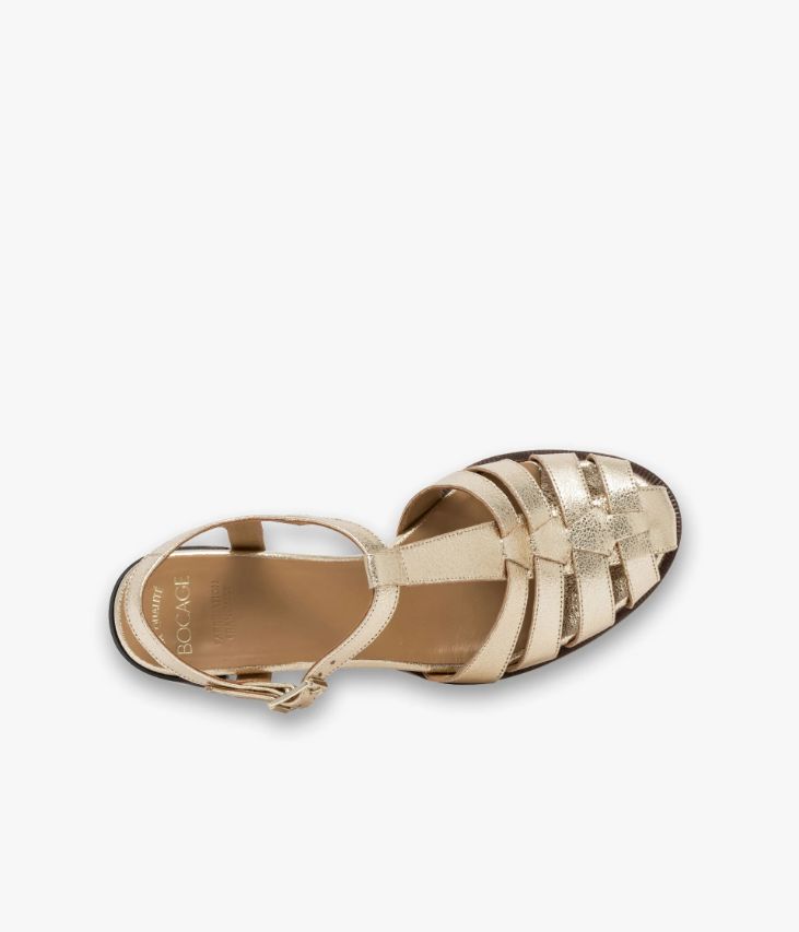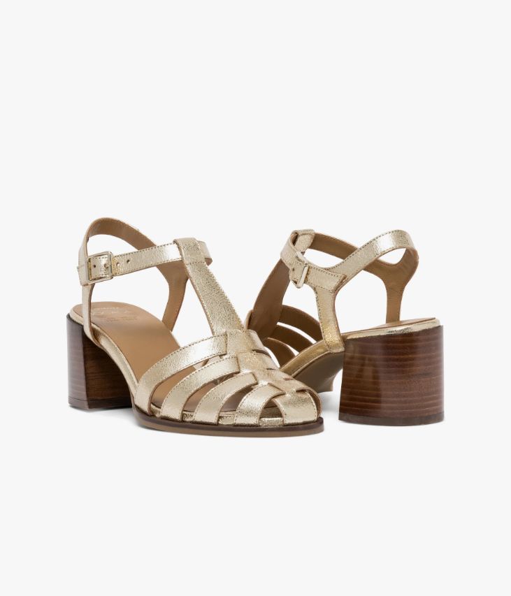 Une sandale en cuir métallisé doré aspect pailleté fabriquée avec soin dans notre propre atelier en France, au cœur du Maine et Loire (49). Cette sandale Salomé enveloppe parfaitement le pied grâce à un joli jeu de brides sur l’avant et autour de la cheville. Une chaussure entièrement doublée cuir avec semelle intérieure cuir dotée d’une fine mousse. Elle repose sur une semelle fine avec trépointe cuir ciselée et large talon lamellé collé. Notre technologie Bocage Innovation vous garantit un bien-être inégalé. La semelle dissimule des élastiques qui permettent à votre chaussure de s’adapter à votre pied. Fermeture par boucle dorée.