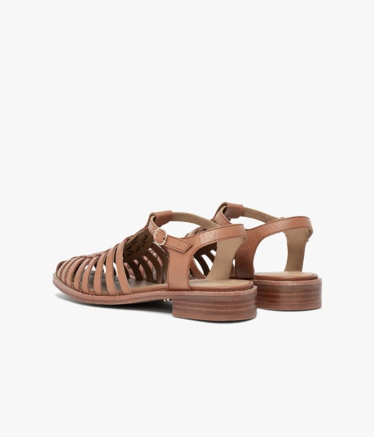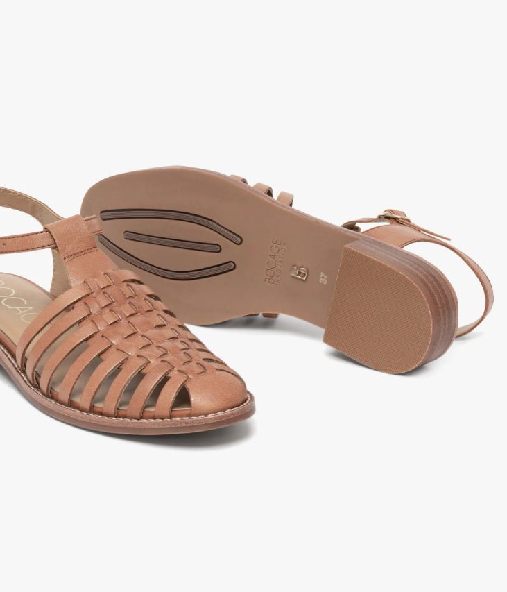 Une sandale réalisée en cuir cognac fabriquée avec le plus grand soin. Une sandale plate aux accents résolument rétro avec sa structure tressée sur le dessus du pied et son cuir au tannage végétal à l’aspect authentique. Une chaussure confortable qui s’adapte à chaque morphologie de pied, entièrement doublée cuir et dotée d’une semelle intérieure cuir moussée. Elle se ferme à l’aide d’une boucle dorée, et repose sur une semelle fine avec trépointe cuir piquée et un petit talon lamellé collé. Notre technologie Bocage Innovation vous garantit un bien-être inégalé. La semelle dissimule des élastiques qui permettent à votre chaussure de s’adapter à votre pied.
