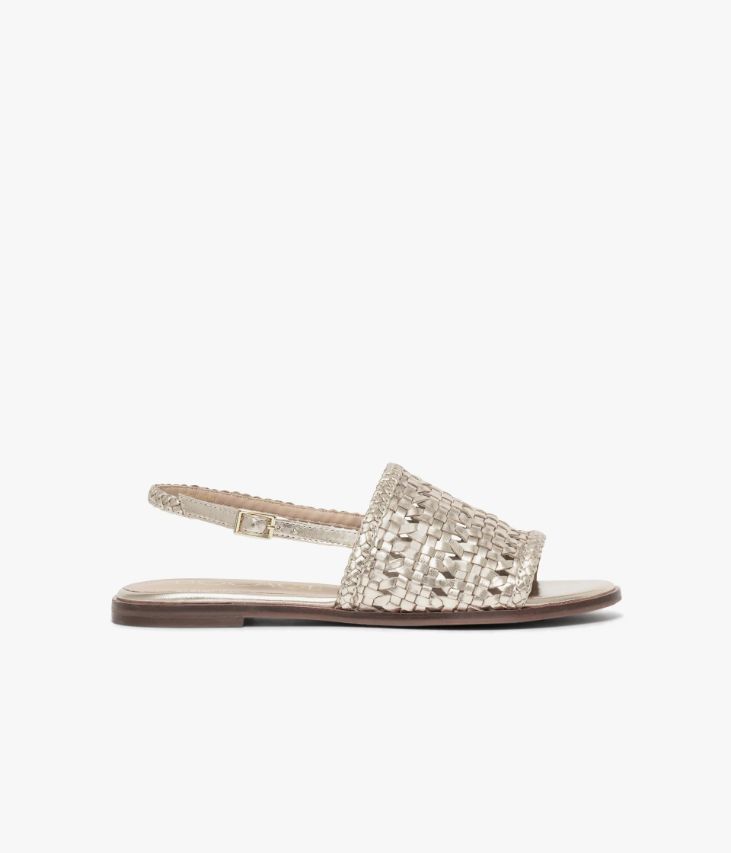 Une sandale en cuir métallisé platine fabriquée avec le plus grand soin. Un modèle à l’allure bohème chic doté d’une large bride en cuir tressé et d’une fine tresse à l’arrière du talon, fermée par une boucle dorée. Sa tige souple s’adaptant à la morphologie du pied et sa semelle intérieure cuir moussée assurent un grand confort. Elle repose sur une semelle fine avec trépointe cuir et talon ultra plat. Notre technologie Bocage Innovation vous garantit un bien-être inégalé. La semelle dissimule des élastiques qui permettent à votre chaussure de s’adapter à votre pied.