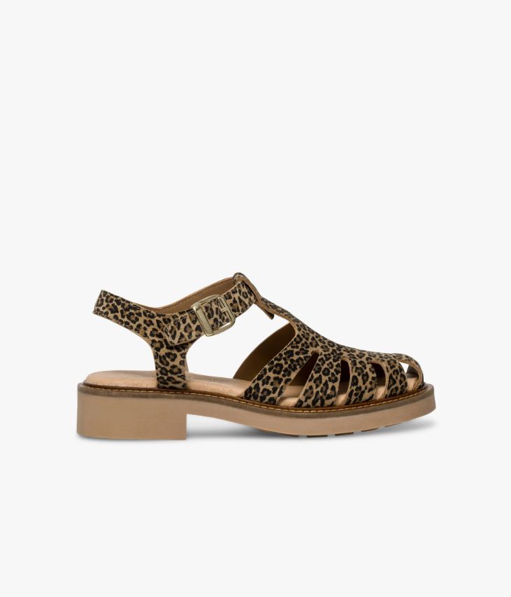 Une sandale en cuir velours imprimé léopard fabriquée avec soin au Portugal. Une sandale fisherman à la structure enveloppante offrant un excellent confort de marche. Elle se ferme à l’aide d’une boucle dorée sur la bride cheville. Une chaussure entièrement doublée cuir avec semelle intérieure cuir moussée. Elle repose sur une semelle antidérapante avec trépointe cuir piquée et un petit talon confortable. Semelle 1,5 cm.
