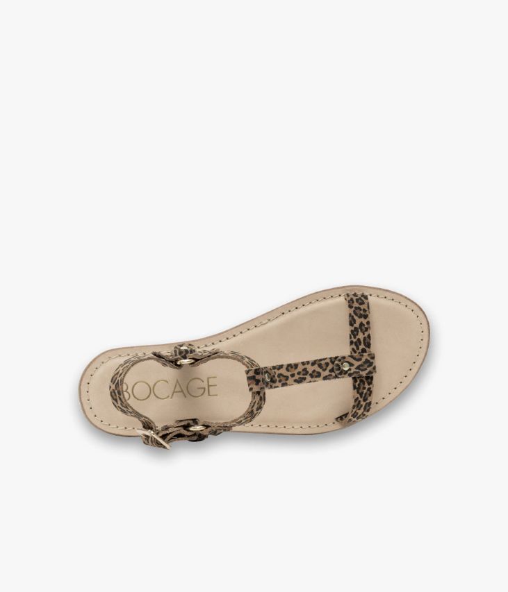 Une sandale en cuir velours léopard fabriquée avec soin en Italie. Une sandale plate au design épuré, composée de brides articulées fixées par de petits clous dorés, avec anneaux métalliques de chaque côté de la cheville. Elle s’ajuste à l’aide d’une boucle carré sur la bride arrière. Cette sandale repose sur une semelle en cuir avec première en cuir au tannage végétal dotée d’une fine mousse.
