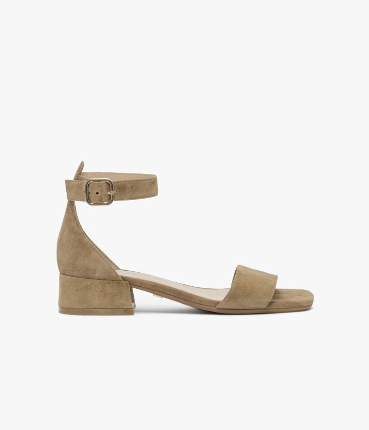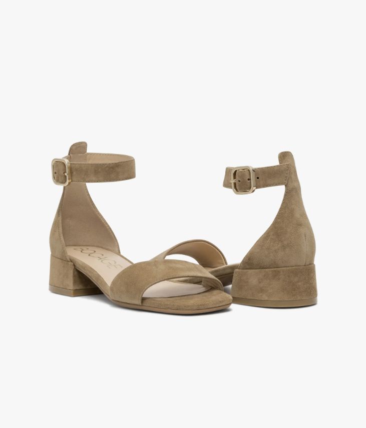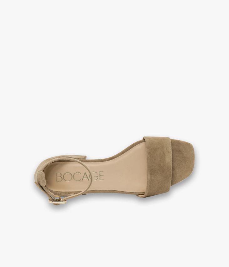 Une sandale en cuir velours sable fabriquée avec le plus grand soin. Une sandale au design épuré avec large bride sur le bout du pied et talon fermé. Elle assure un excellent maintien du pied grâce à une bride autour de la cheville fermée par une boucle en métal doré dissimulant un élastique d’aisance. Cette sandale repose sur une semelle fine avec large talon enrobé. Notre technologie Bocage Innovation vous garantit un bien-être inégalé. La semelle dissimule des élastiques qui permettent à votre chaussure de s’adapter à votre pied. Une chaussure entièrement doublée cuir avec semelle intérieure cuir dotée d’une fine mousse. Logo signature sous la semelle.