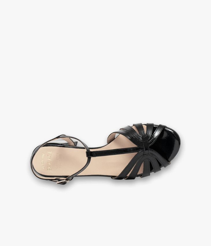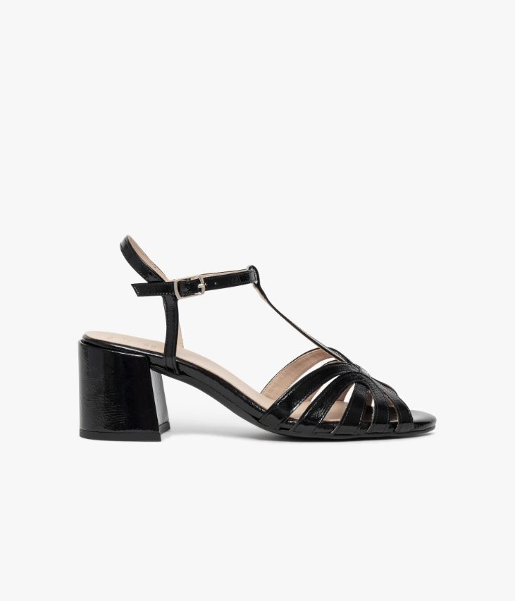 Une sandale en cuir verni noir fabriquée avec soin dans notre atelier en France, au cœur du Maine et Loire (49). Une chaussure forme Salomé qui convient à toutes les morphologies. Entièrement doublée cuir, avec semelle intérieure cuir dotée d’une fine mousse, elle est posée sur une semelle fine et un large talon enrobé. Notre technologie Bocage Innovation vous garantit un bien-être inégalé. La semelle dissimule des élastiques qui permettent à votre chaussure de s’adapter à votre pied. Fermeture par boucle dorée. Ce cuir Naplak particulièrement souple peut présenter un aspect légèrement froissé.